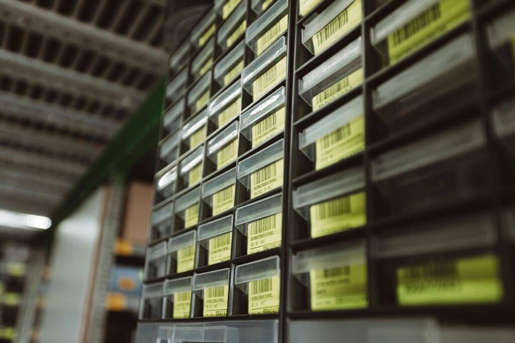 Unser Lager ist mit zahlreichen Ersatzteilen, Spezialölen, Fahrzeugbatterien und Komponenten ausgestattet. Jede Lagerbox ist per EAN-Code organisiert – für schnelle Verfügbarkeit und effiziente Abläufe.