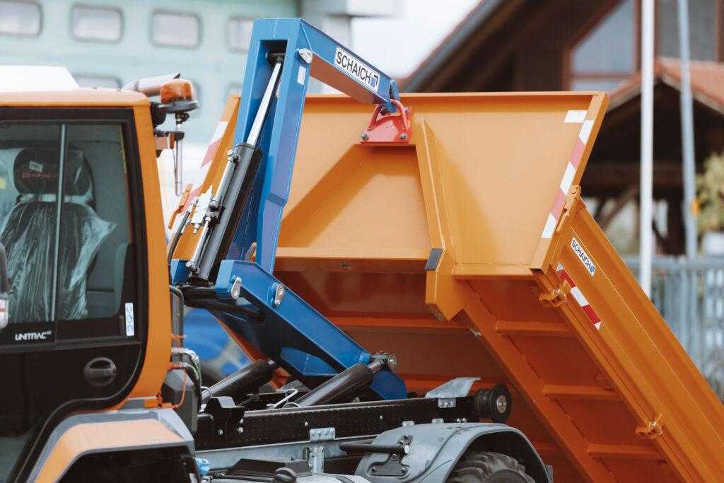 Der Hakenlift ist ein eigenes Entwicklungsprojekt, das in Zusammenarbeit mit der Firma Schaich entstanden ist. Von der Konstruktion über Prototypenbau bis hin zu Montage, Hydraulik und finalen Tests wurde jedes Detail präzise durchdacht. Das Ergebnis: ein kraftvoller, langlebiger Hakenlift für anspruchsvolle Anwendungen.